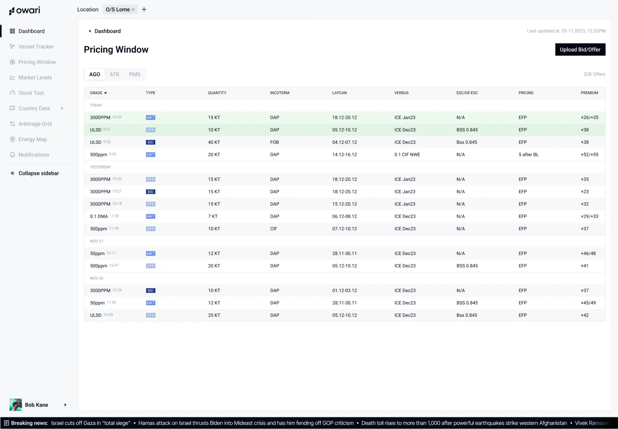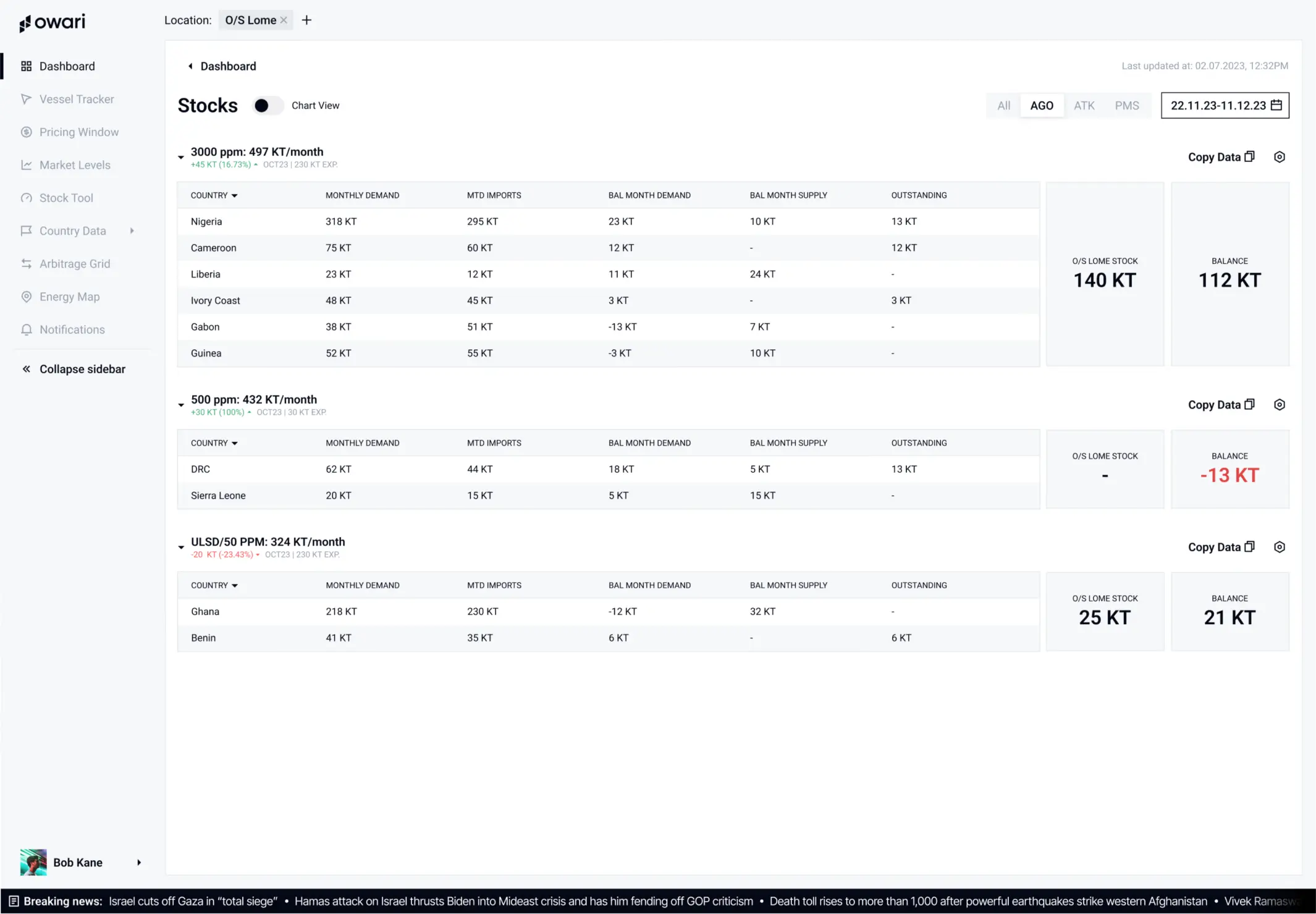 - Experience real-time offshore stock levels of oil products with detailed precision.